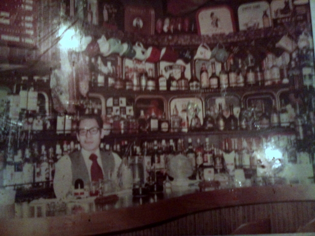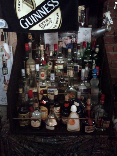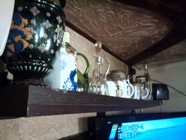 常連Aさんが作ってくれた棚。東日本大震災でもお酒を守ってくれました。