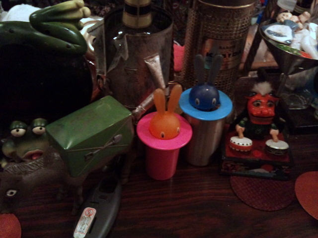 うさぎの爪楊枝要れ。ロバの煙草入れ。ロバはお尻からタバコが出てきます。