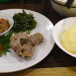 お皿に料理がいっぱいあるので、まずはイモから。蒸かした(電子レンジでチンした)イモですが、このイモにしおからを乗せてがぶりと行きます。このしおからが美味しい。普通の塩辛じゃないです。全然生臭くない。藤田さんがしおからじゃない。もっと高級な何とかだって言ってましたが忘れました。正直これだけでも十分。