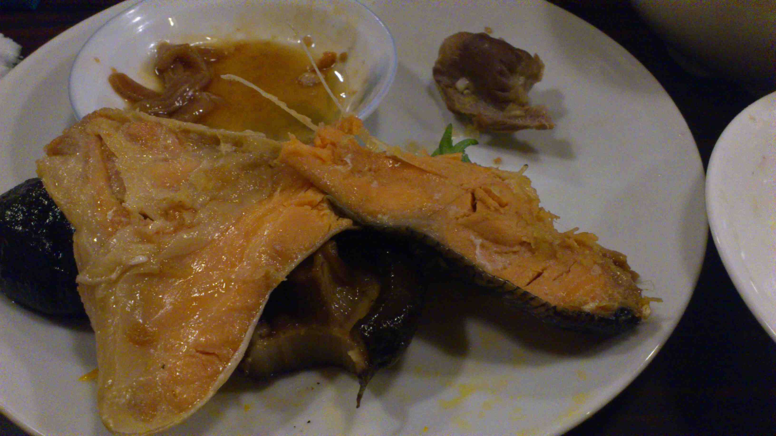 日本酒の会は料理が多いので、食べ終わるか終わらないかくらいで新しい料理を皿に乗せられる。鮭もしいたけの上に乗せられました。鮭のあらですかね。これがまた美味しくって、ご飯欲しくなる。仕込みにどれだけの手間ひまかけてるのか。
