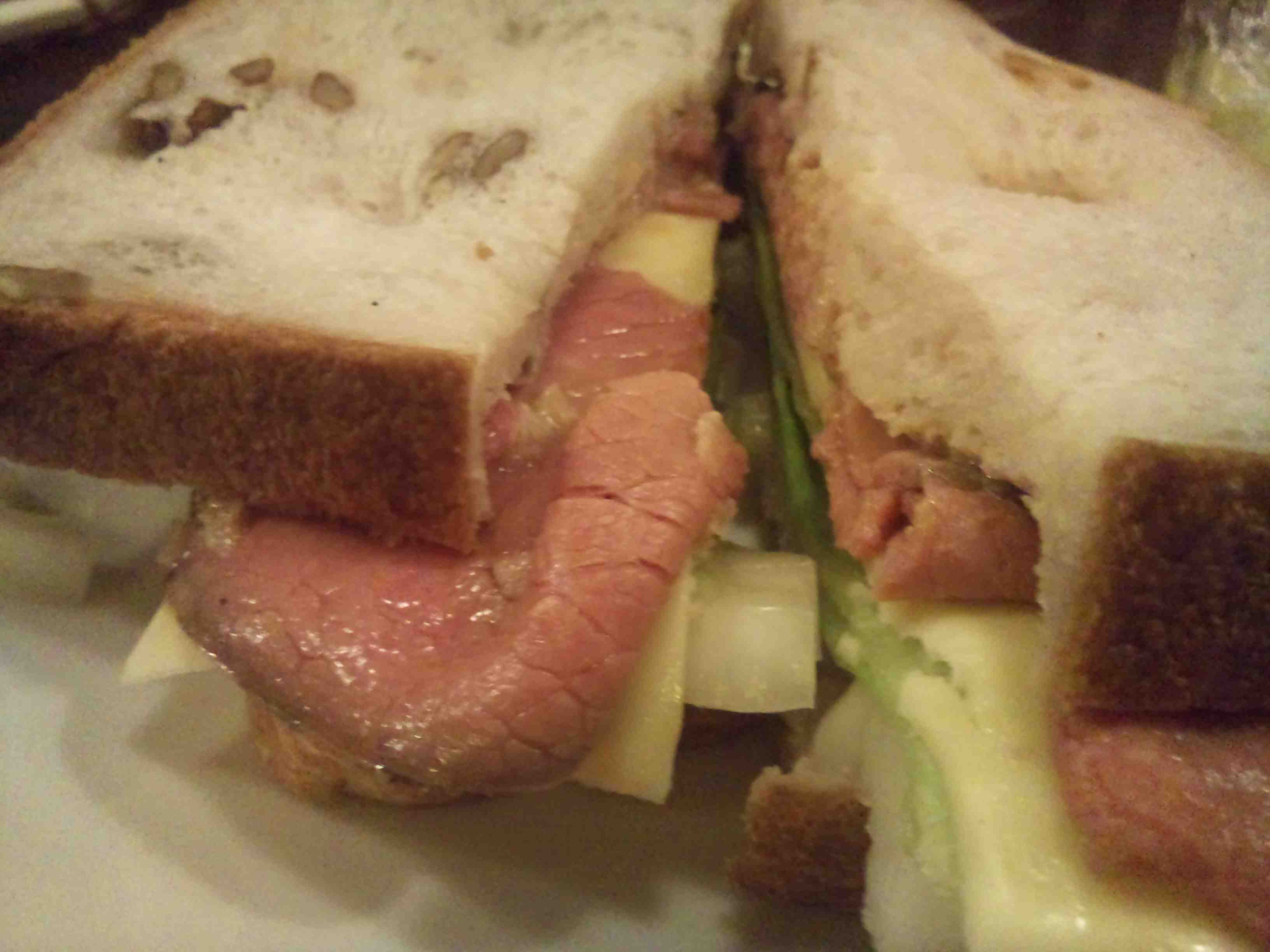 ガンで無かったという事で気を良くした藤田さんが奮発してローストビーフサンド。これはうまい!